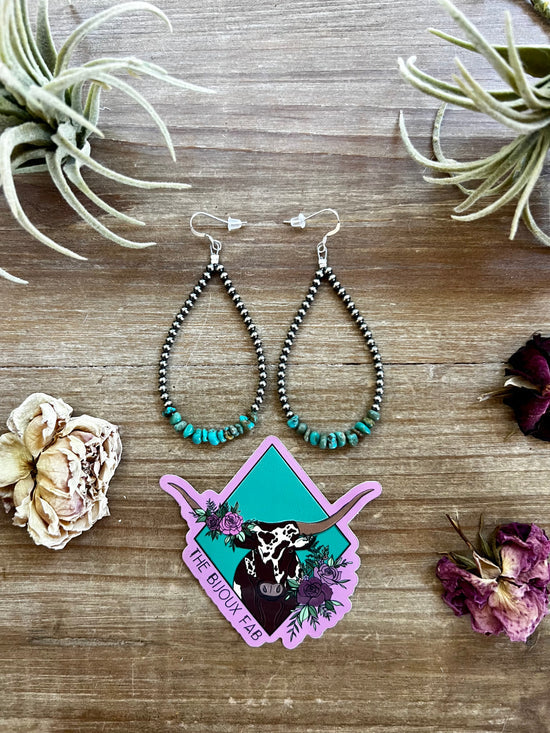 3 mm Sterling Silver Pearl Teardrop Earrings with Real Turquoise Nuggets
