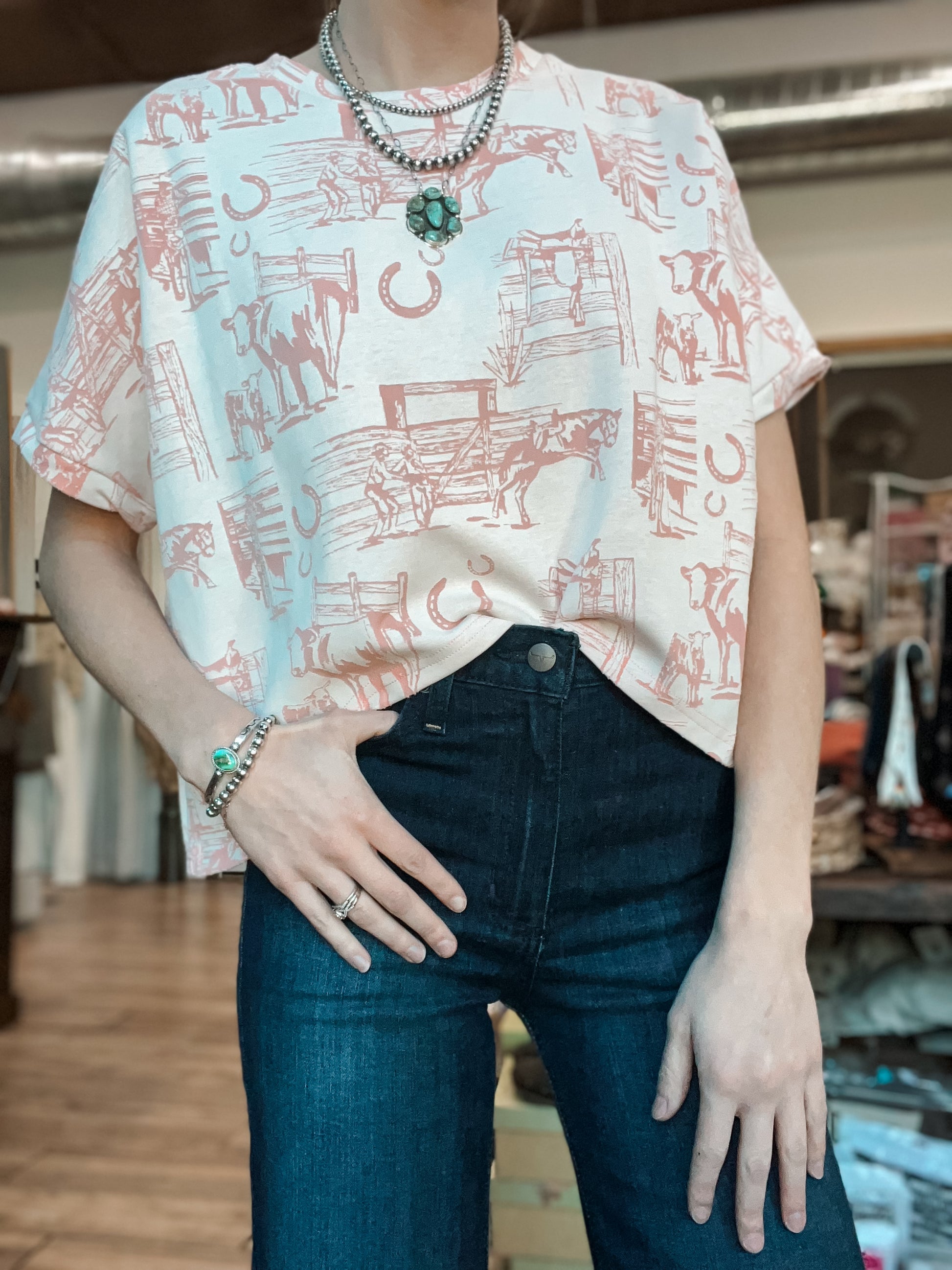 this style of top -- it's good. just a boxy style modest crop with the front hem slightly shorter than back hem. BUT don't let that scare you if your like ehhh this is too short... BECAUSE when in doubt LAYER it out.