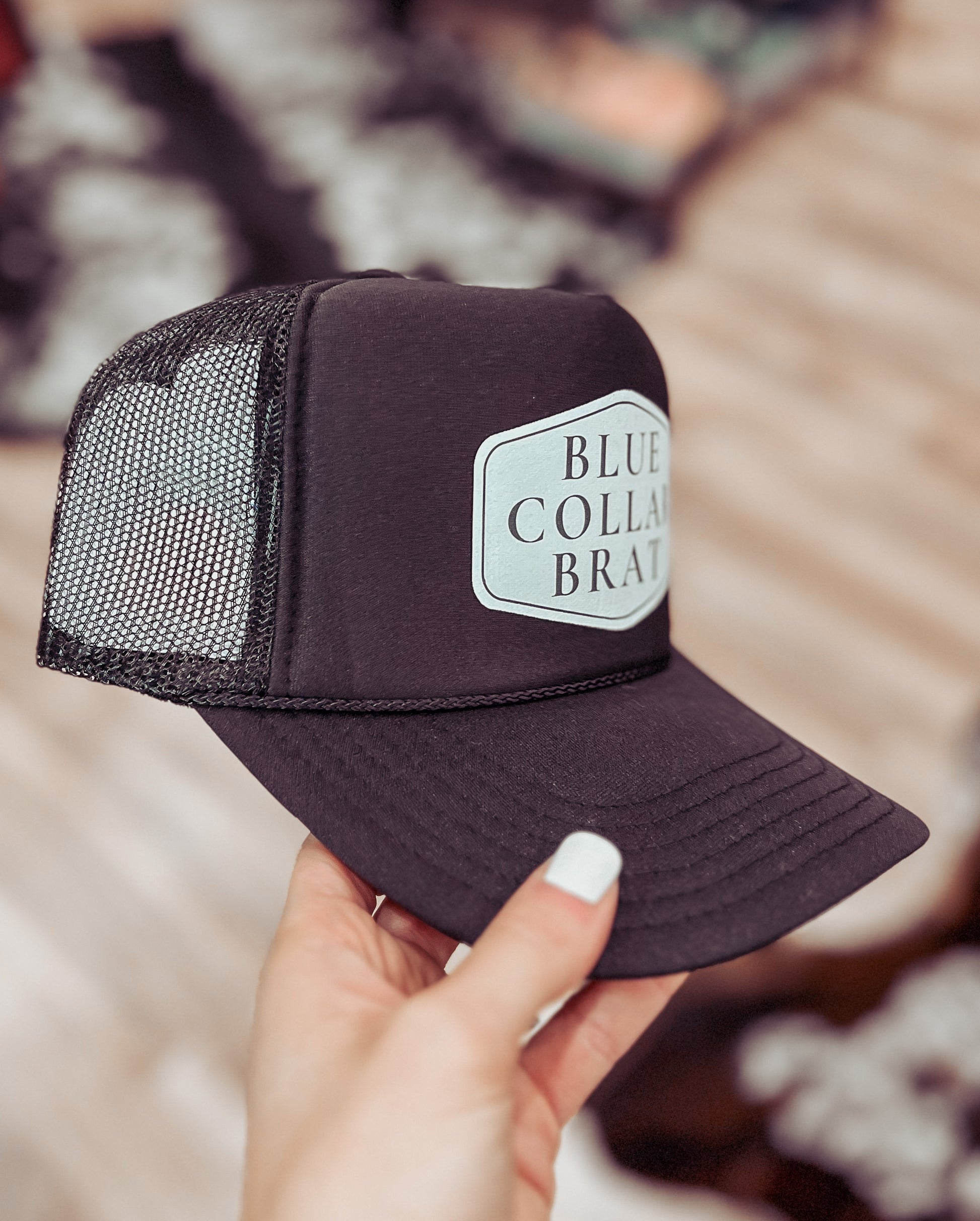 Our best selling trucker hat in Black with a white design!! Perfect for all those spoiled blue collar wives/gfs!