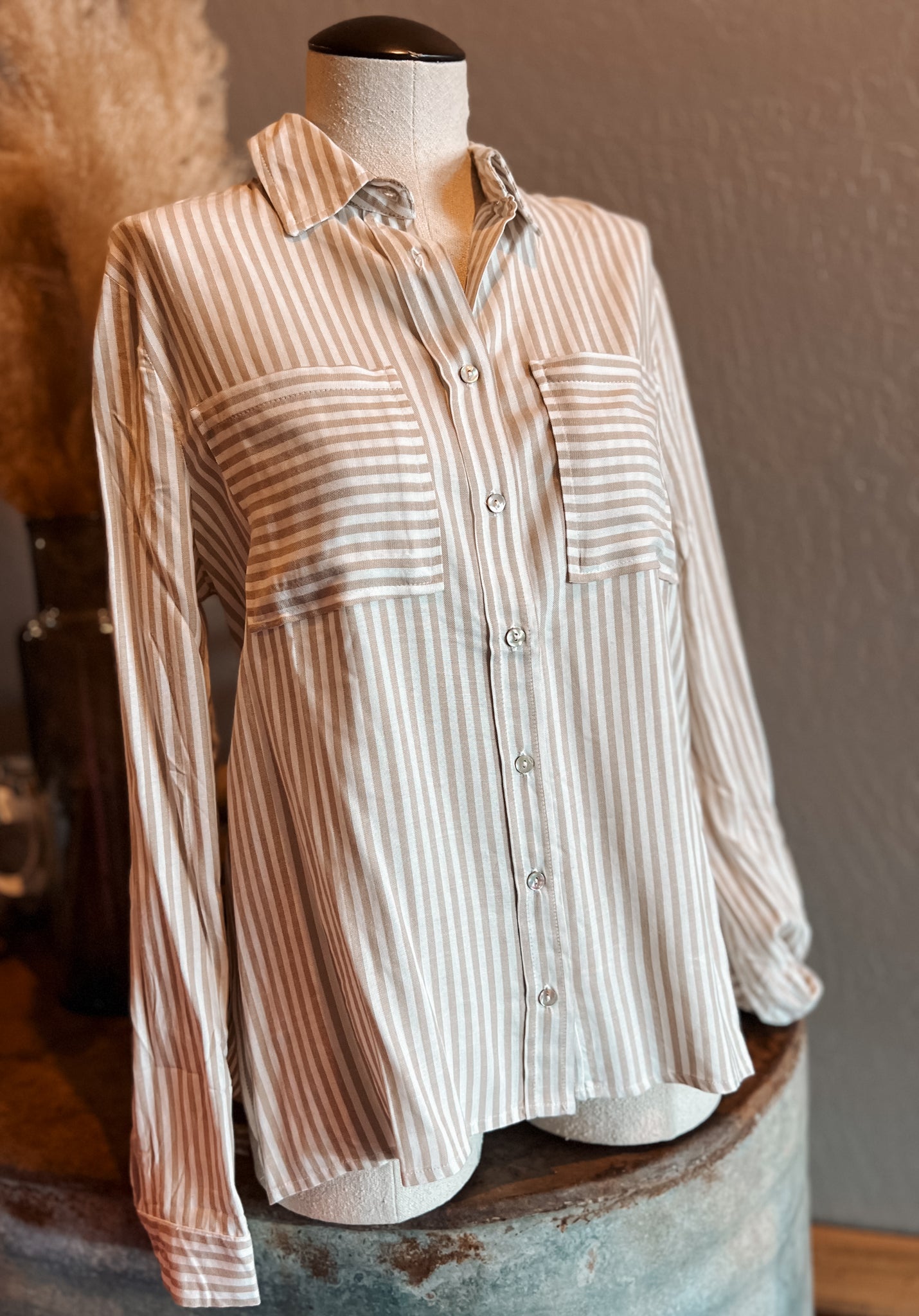 Eliana Stripe Button Up *Taupe