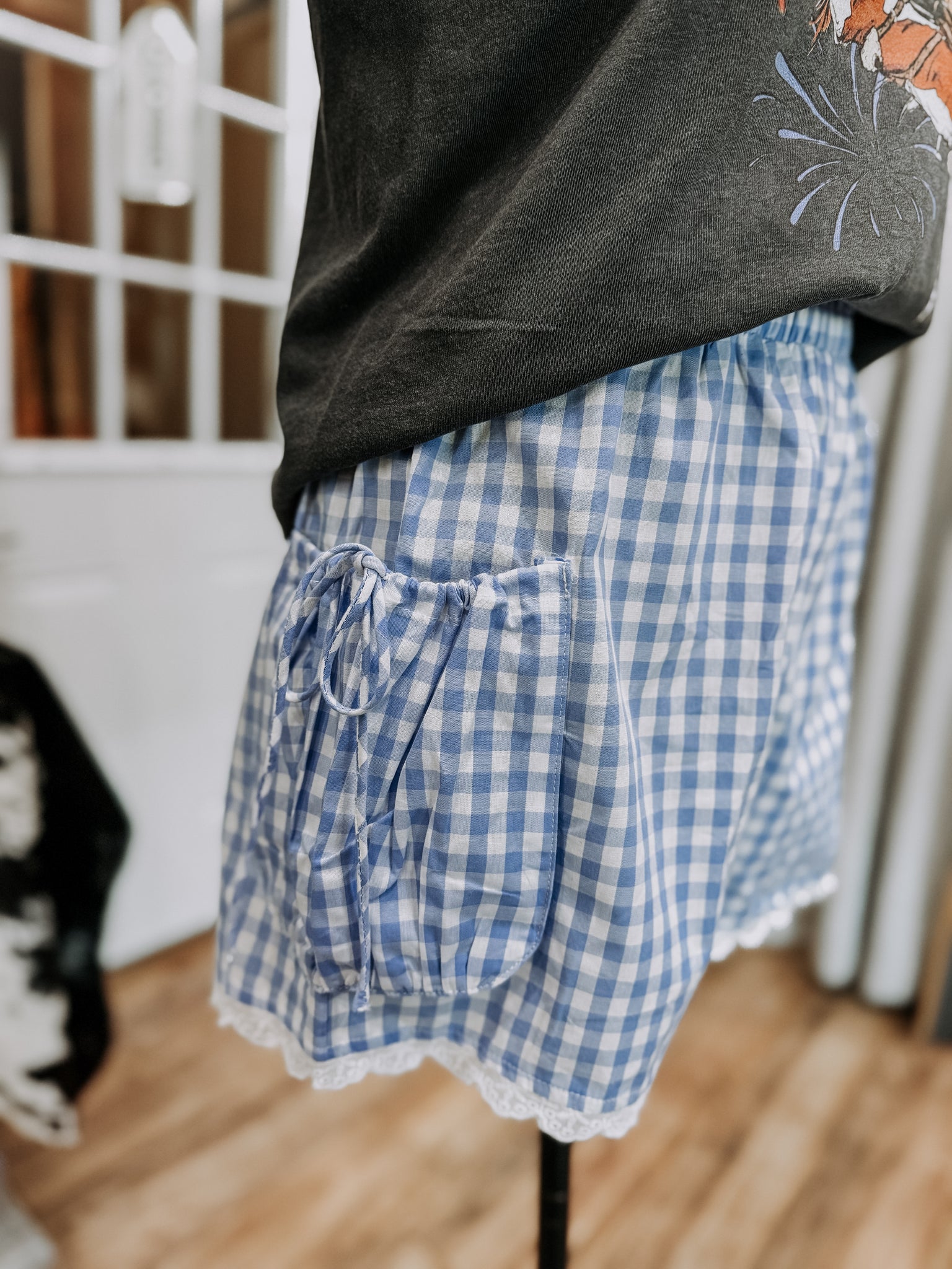 Gingham Lace Lined Bow Tie Shorts *Baby Blue