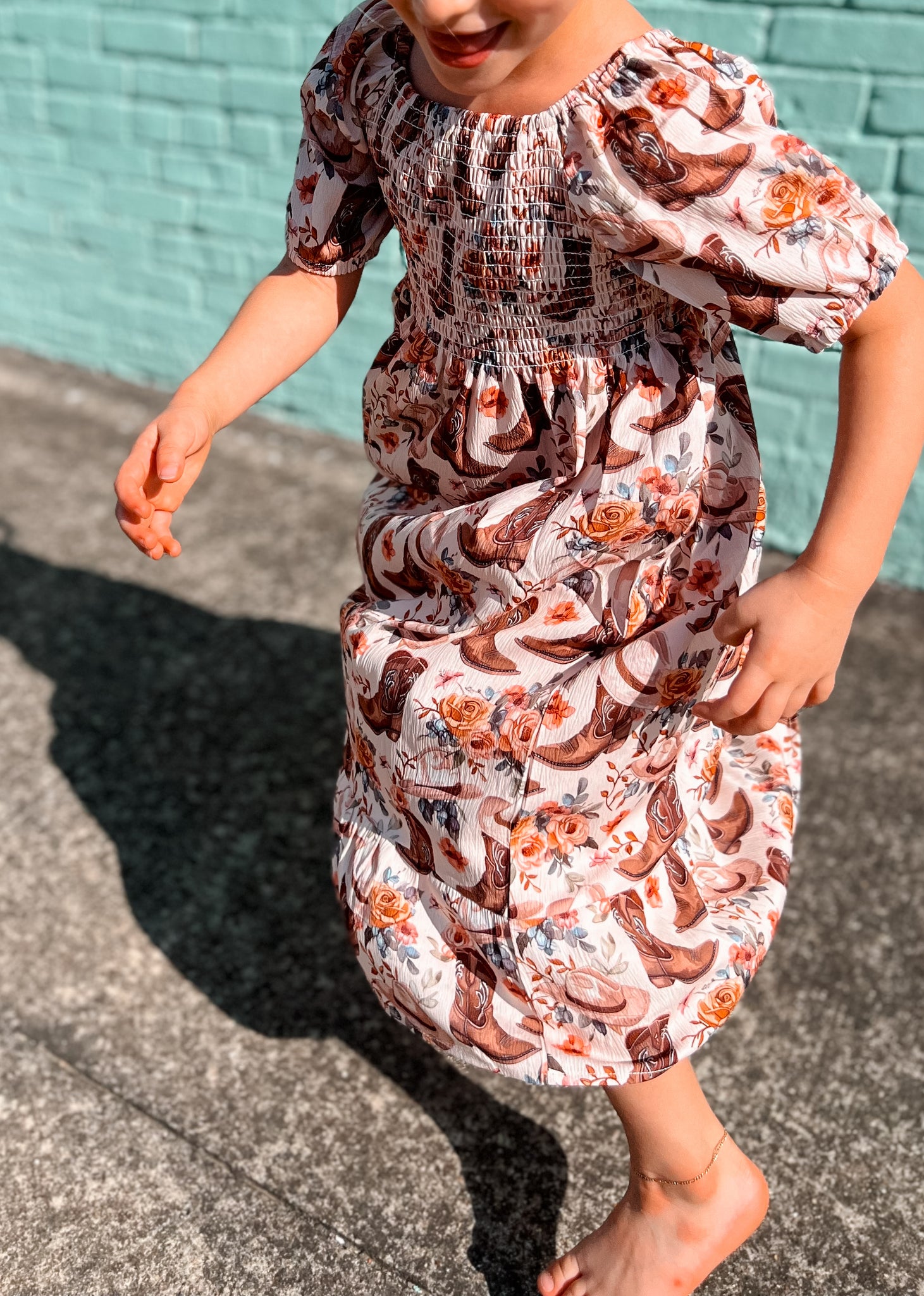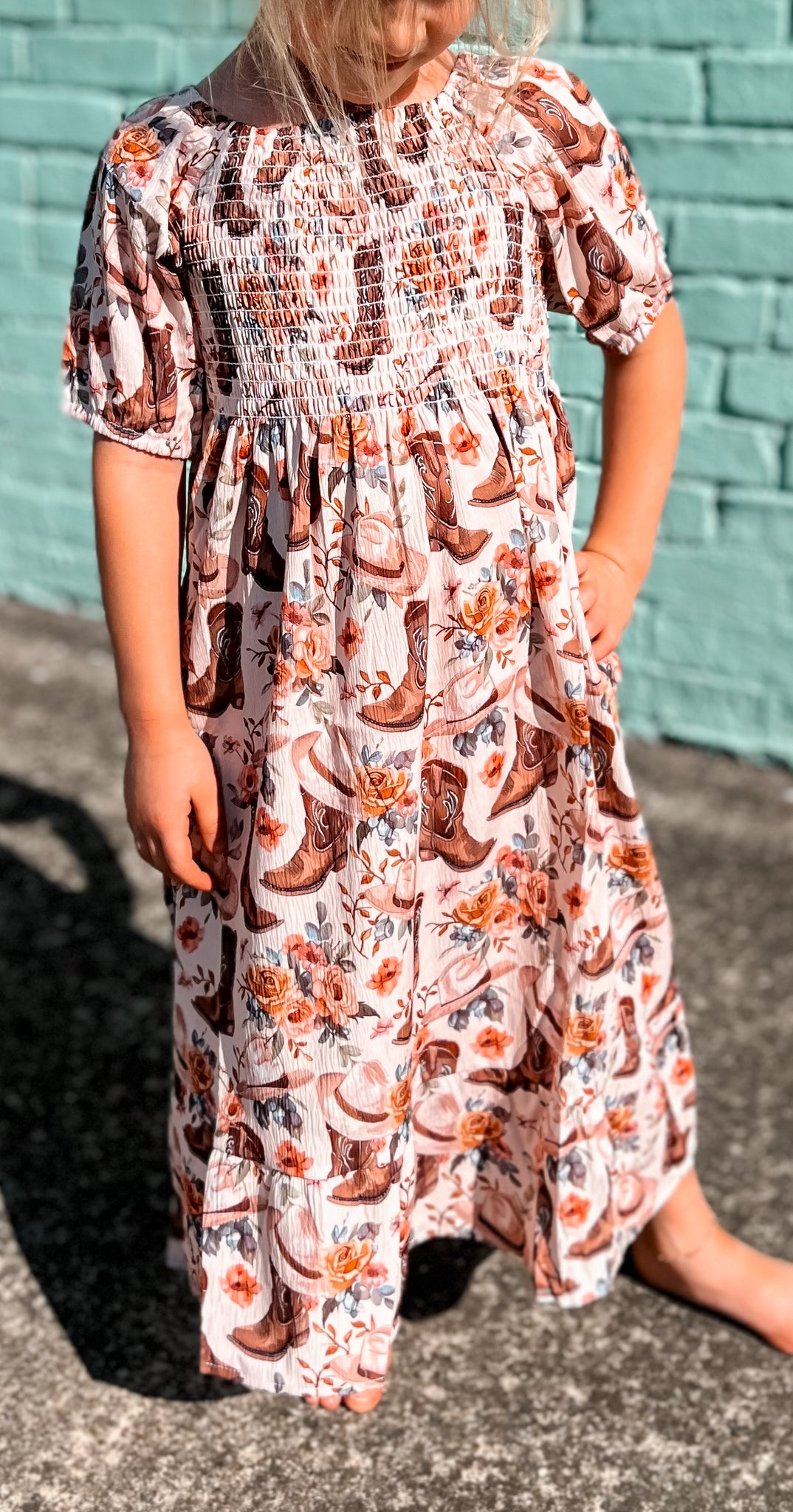 Get ready for some serious flower power with our Girls Floral Boot Dress. This playful dress combines the perfect amount of sweet and sassy with its colorful floral print and trendy boot design. Perfect for the fashion-forward girl who loves to stand out in a crowd.