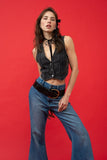 Elevate your style with our Lacy Vintage Denim Vest. Crafted from premium denim with a vintage washed finish, this vest boasts a flattering fit and convenient snap button closure. Perfect for layering, it's a must-have for any fashion-forward individual. Take your denim game to the next level with this versatile and stylish piece.