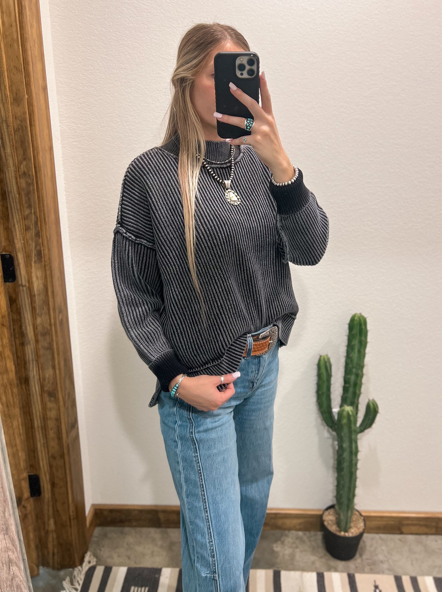 Get ready to cozy up in style with our Lenna Oversized Sweater in black! This washed ribbed sweater features an oversized fit and side slits for a trendy twist. Stay warm and fashionable this season.