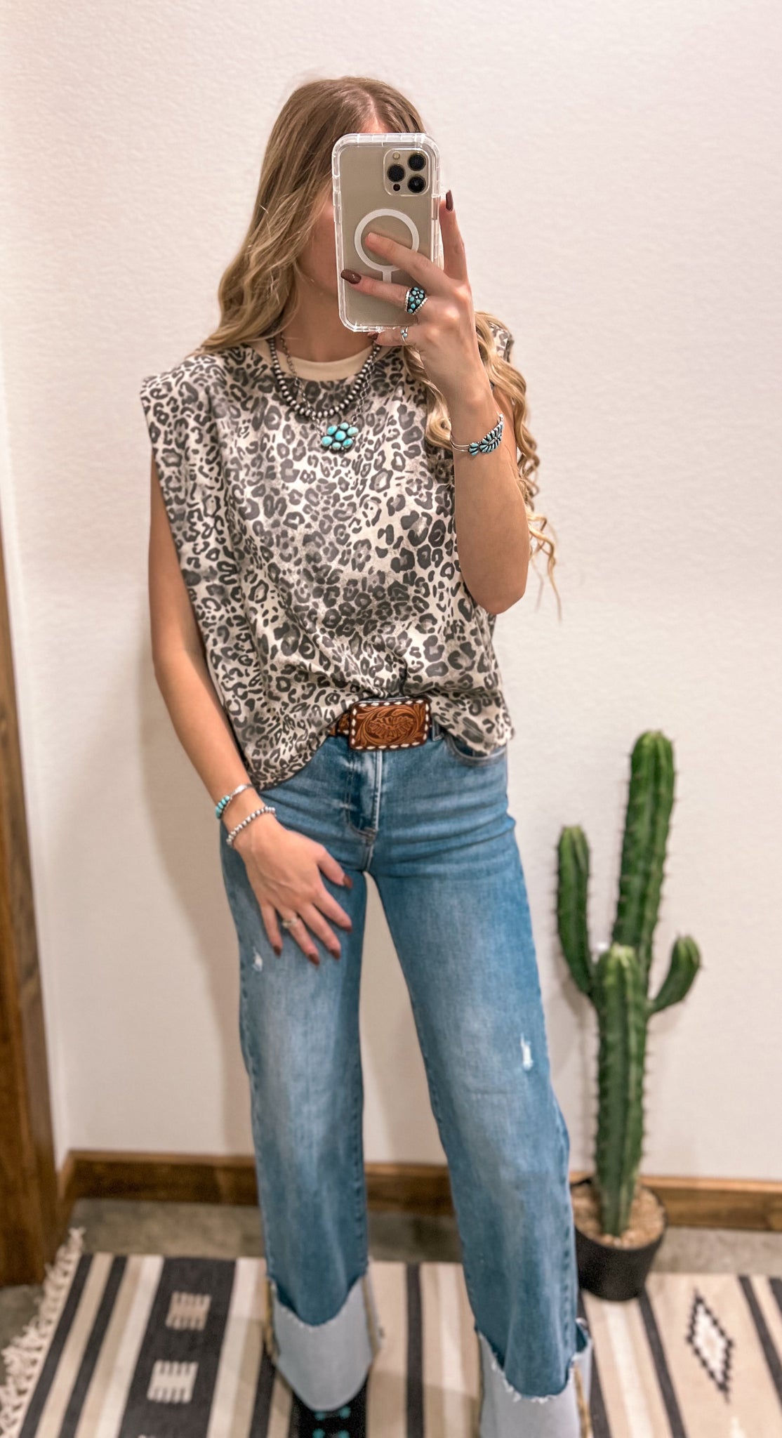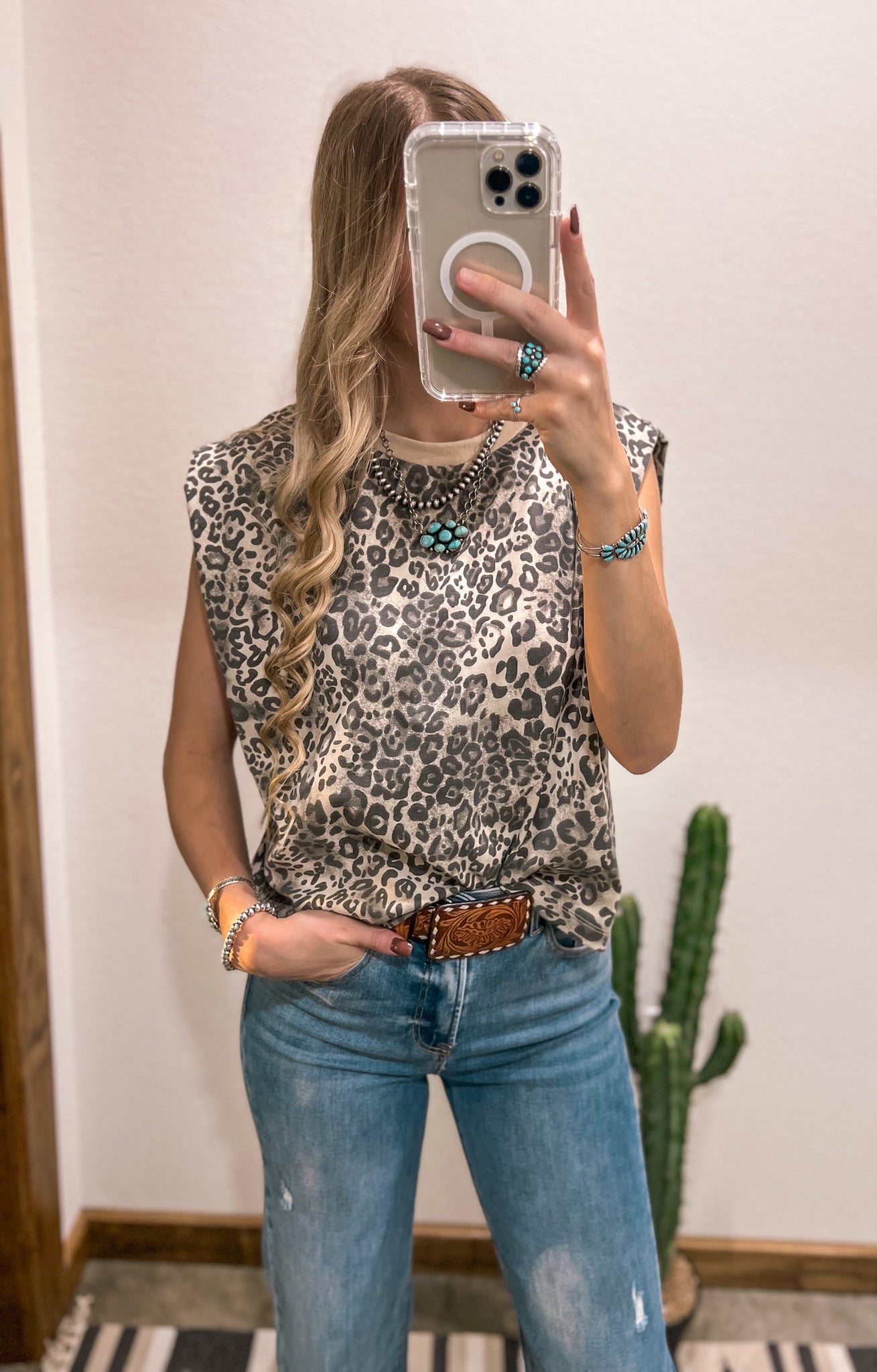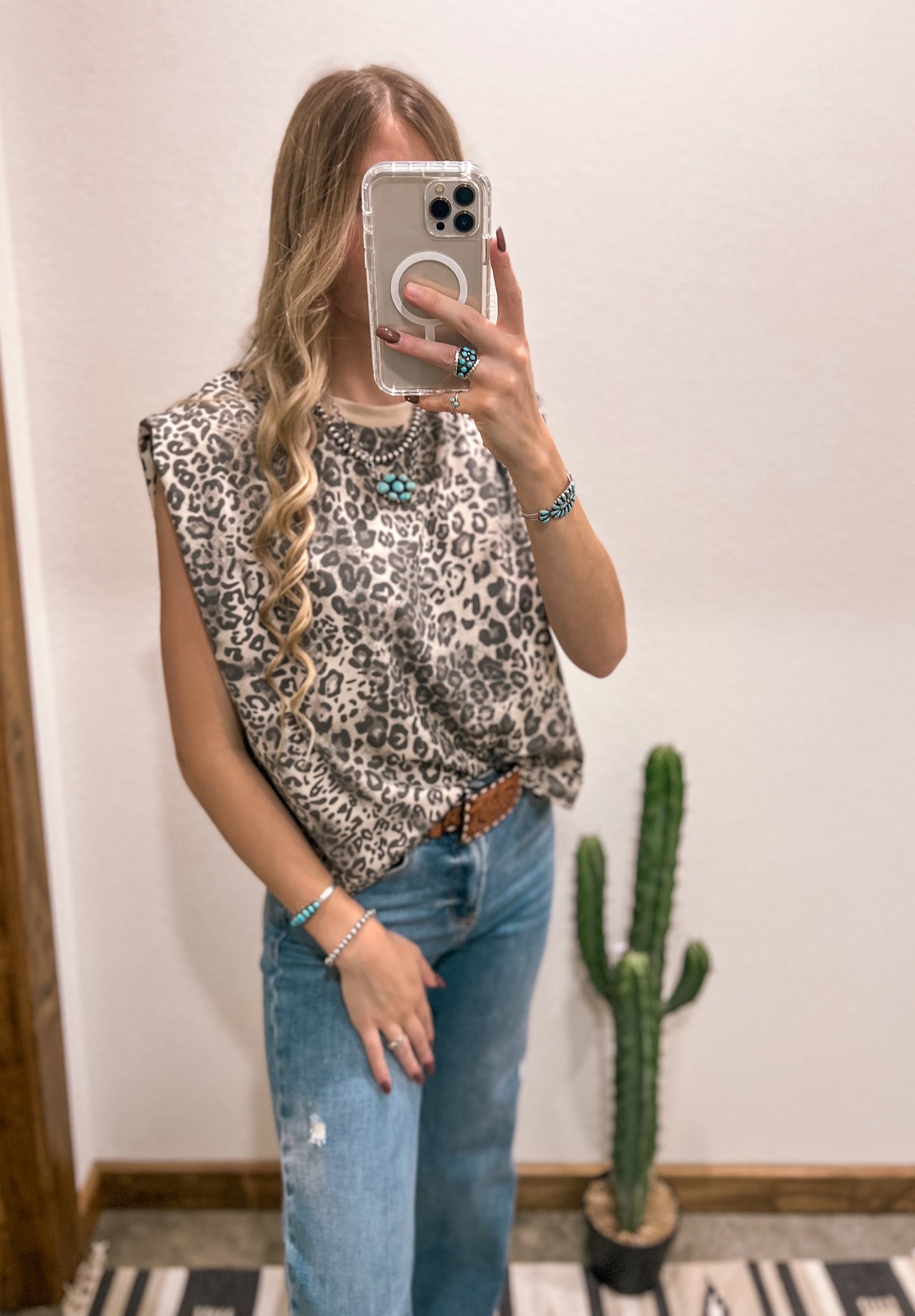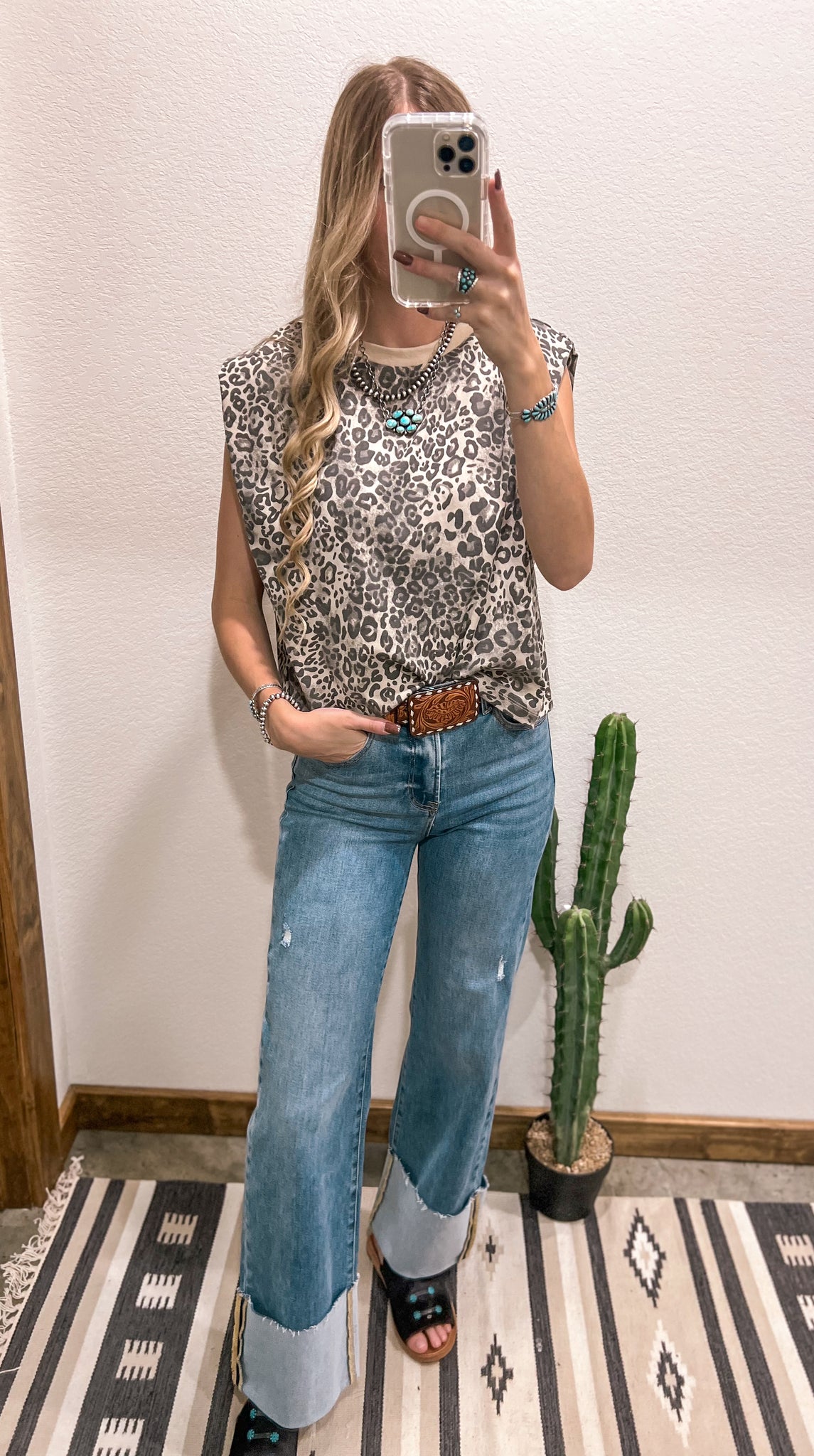 Unleash your wild side with this Leopard Dreams Top! Featuring a fierce leopard print and edgy cutoff sleeves, this top is perfect for adding some fun and personality to your wardrobe. (Roarrrr!!!)