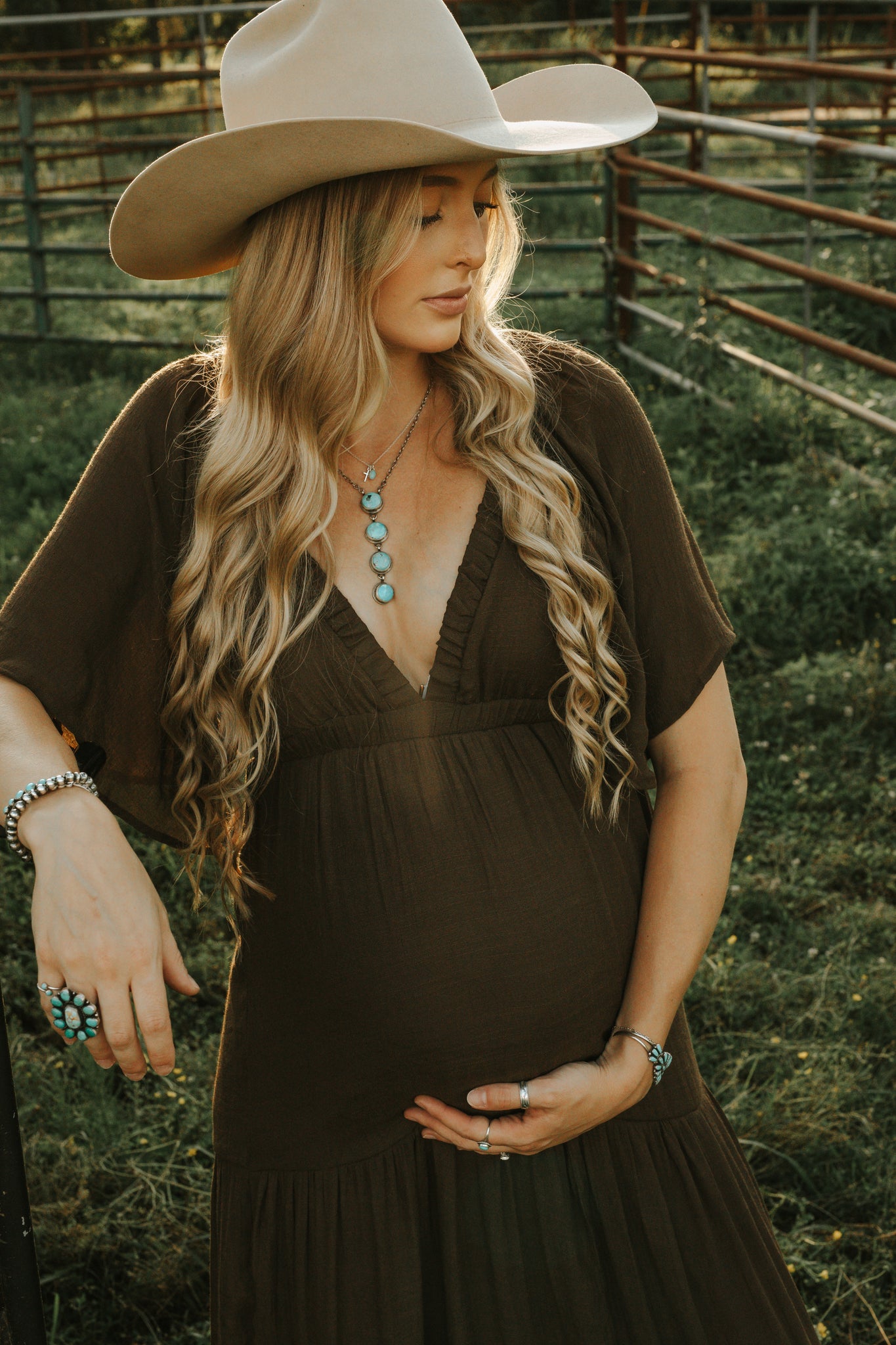 Get ready to turn heads in the Macy Mocha Maxi! This stunning V-neck dress features flowy sleeves and a tiered maxi design for a whimsical yet elegant look. Perfect for any occasion, this dress will have you feeling confident and stylish wherever you go!