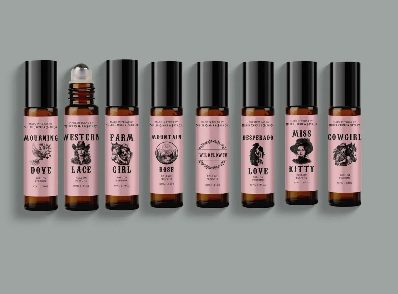Our Barn & Hive Western Collection Roll-On Perfumes are crafted with nourishing jojoba oil blended with essential oils and fine fragrance oils. Each perfume comes in a 0.34 oz amber glass roller bottle - the perfect size for travel, gifting, or slipping into your bag for daily touch-ups.