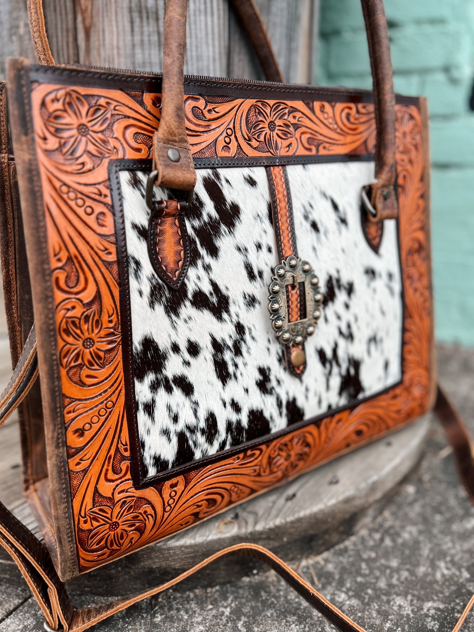 Experience the stunning blend of style and functionality with The Lauren Tote Crossbody. Crafted from authentic cowhide and tooled leather, this purse is not just a fashion statement but also offers conceal carry pockets for your peace of mind. The removable adjustable strap ensures versatility for any occasion. Embrace elegance and practicality!