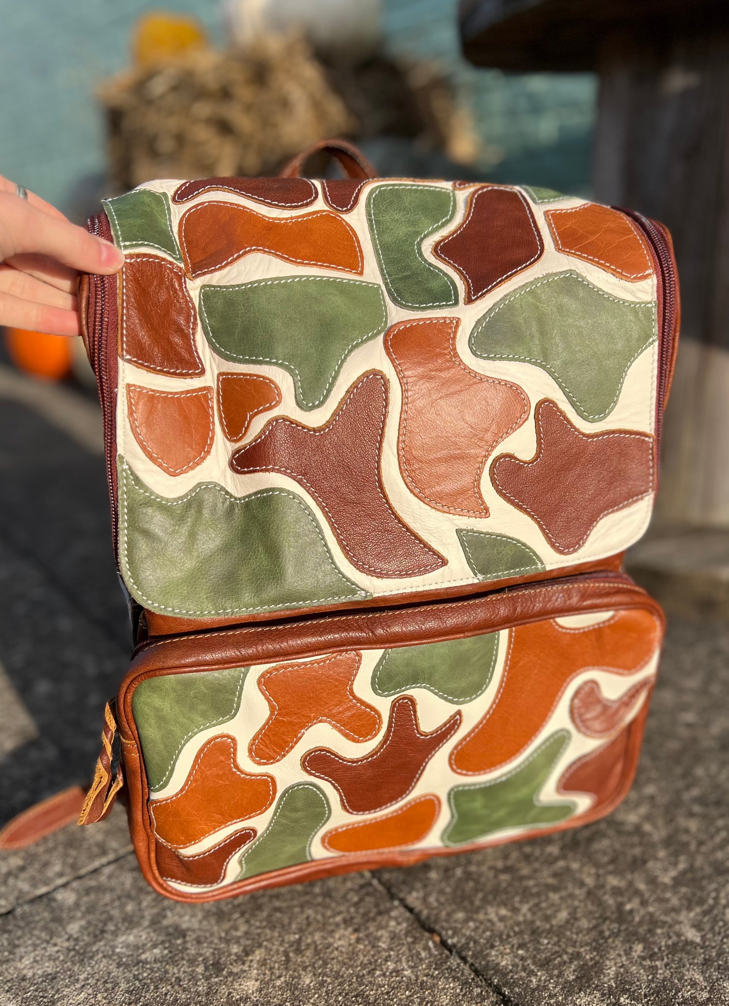 "Be ready for any adventure with the Mallard Backpack/Diaper Bag. Made from stylish duck camo leather, this bag features a plush velvet interior and a discreet conceal carry option. Perfect for parents and outdoor enthusiasts alike!”