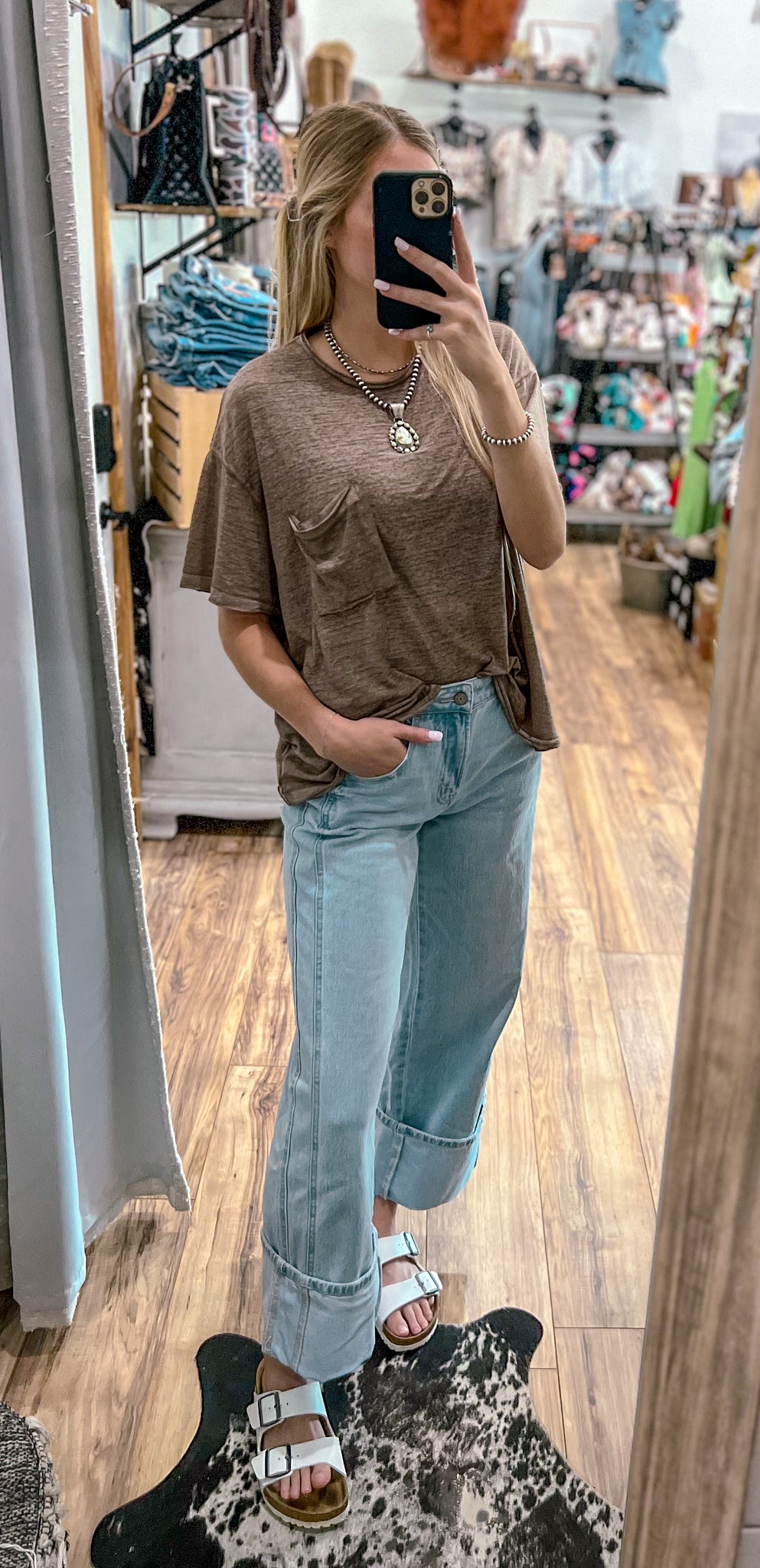 Get ready to rock this oversized washed burnout raw edge pocket tee, aka the Mel Top! With a perfect balance of slouchy and edgy, this mocha top is sure to be your new go-to. Toss it on for a laid-back look or dress it up with your favorite accessories.