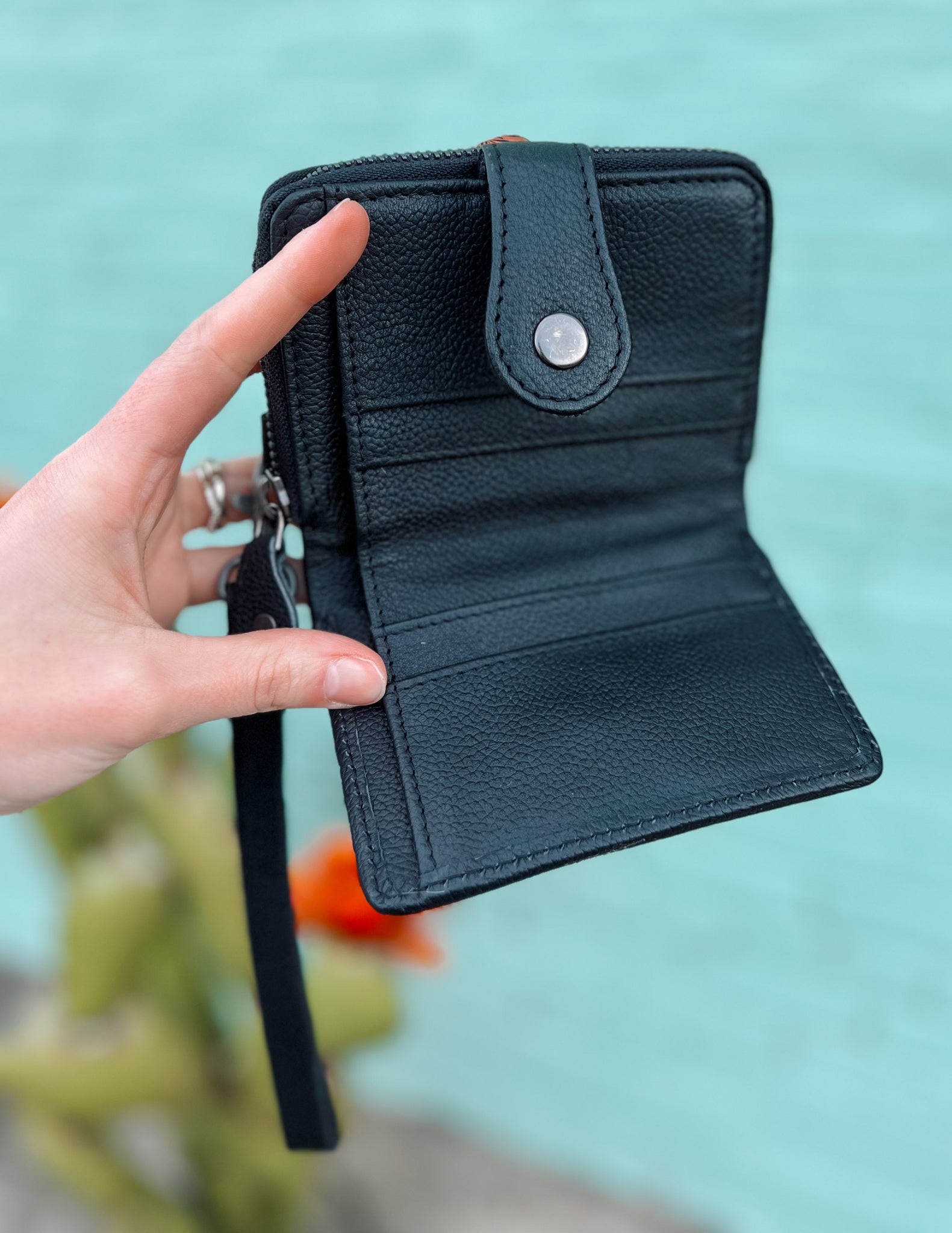 Authentic cowhide trifold wristlet wallet