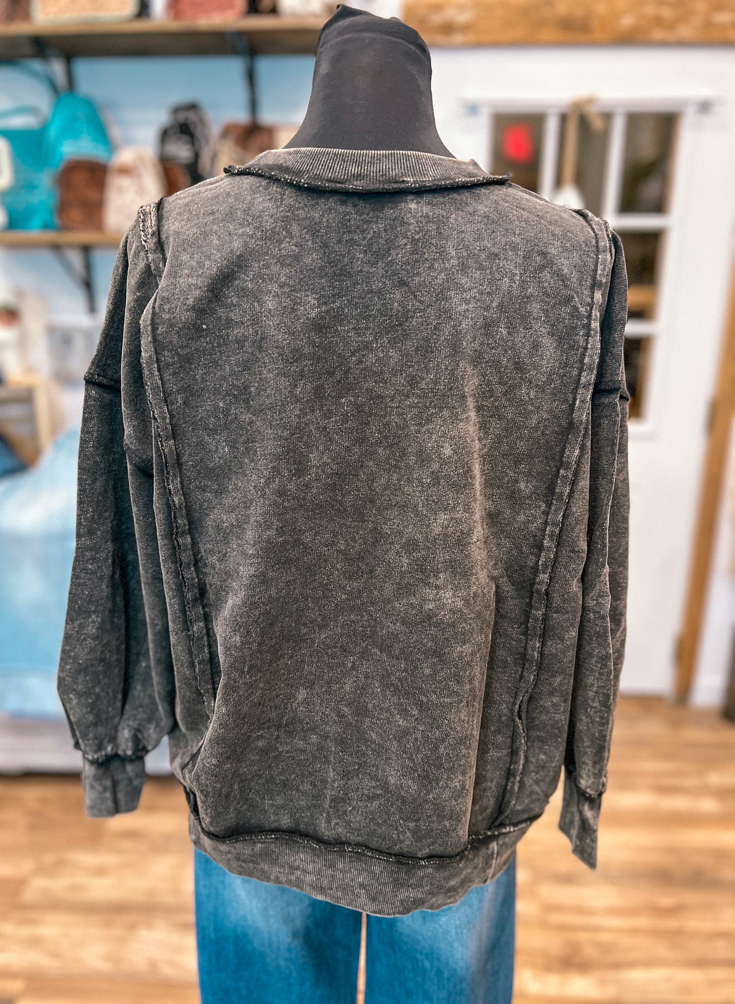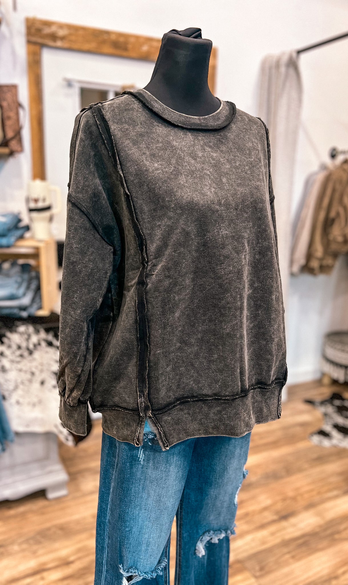 Acid wash sweatshirtGet ready to rock your wardrobe with The Shay Acid Wash Sweatshirt! Perfect for any casual occasion, this sweatshirt features an edgy acid wash design that adds a unique touch to your look. Stay comfortable and stylish with this playful and versatile piece.