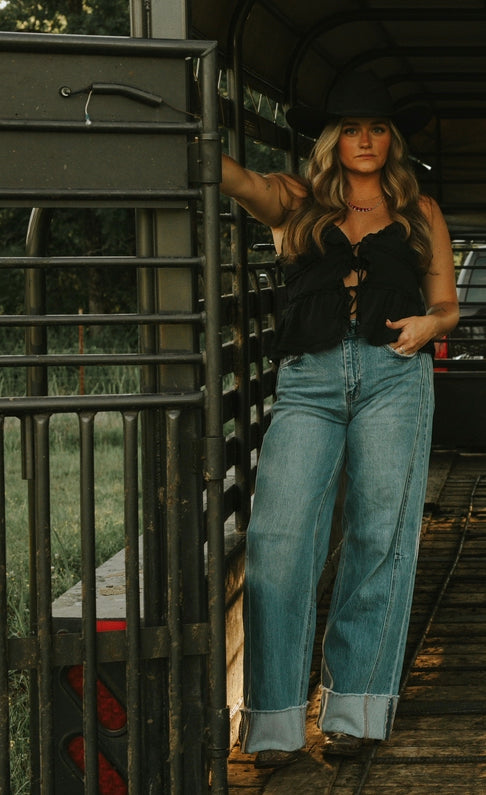 "Experience effortless style and comfort with The Talon Tank *Black. This chic cami top features a flowy chiffon design and delicate ruffled details, making it the perfect addition to any wardrobe. Bring a touch of elegance to any outfit and feel confident and stylish all day long."