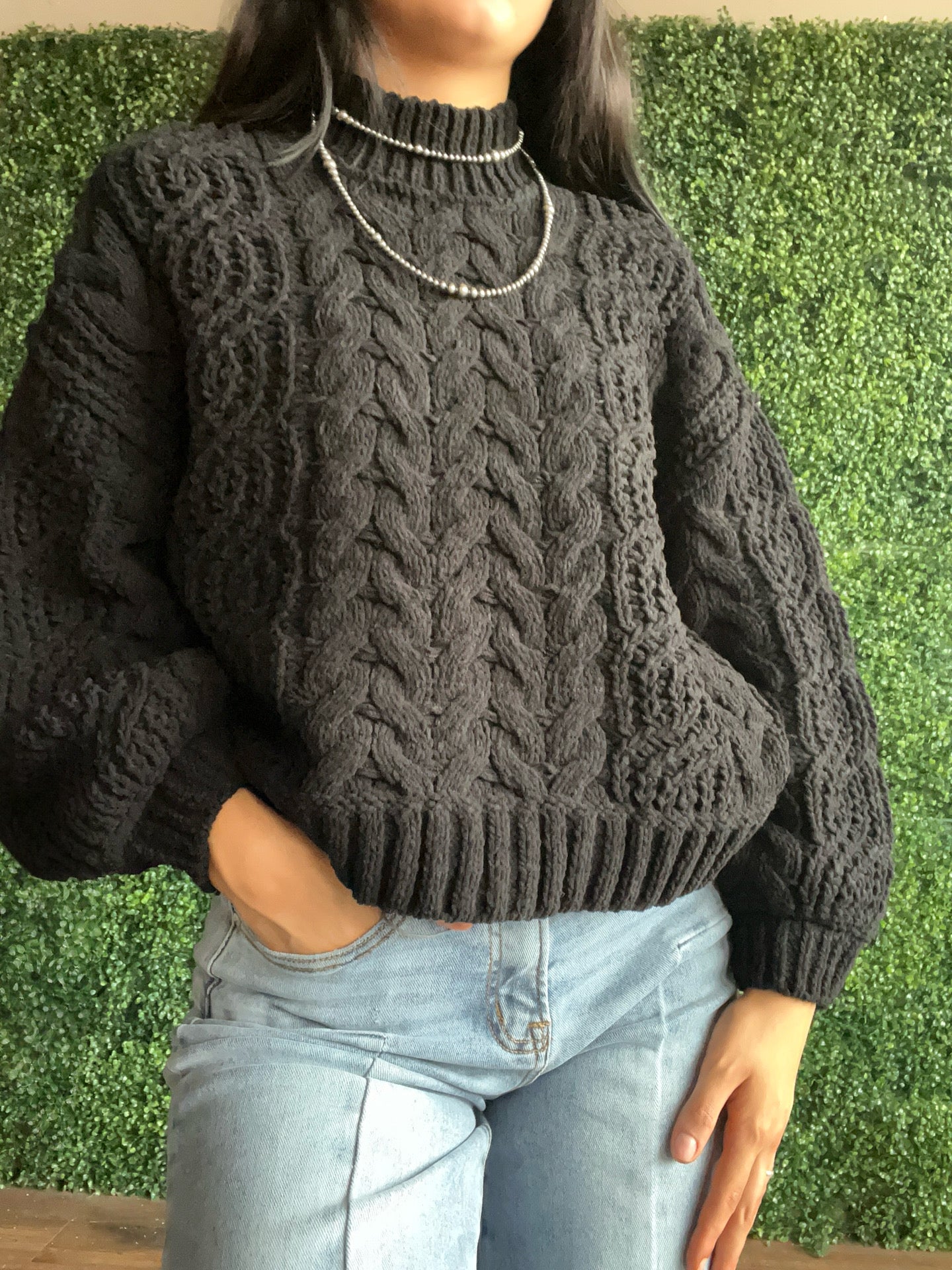 Cozy up in style with The Tiffany Sweater. This black cable knit sweater is perfect for chilly days, providing both warmth and fashion. Embrace your playful side and add some fun to your wardrobe with this quirky and comfortable piece.