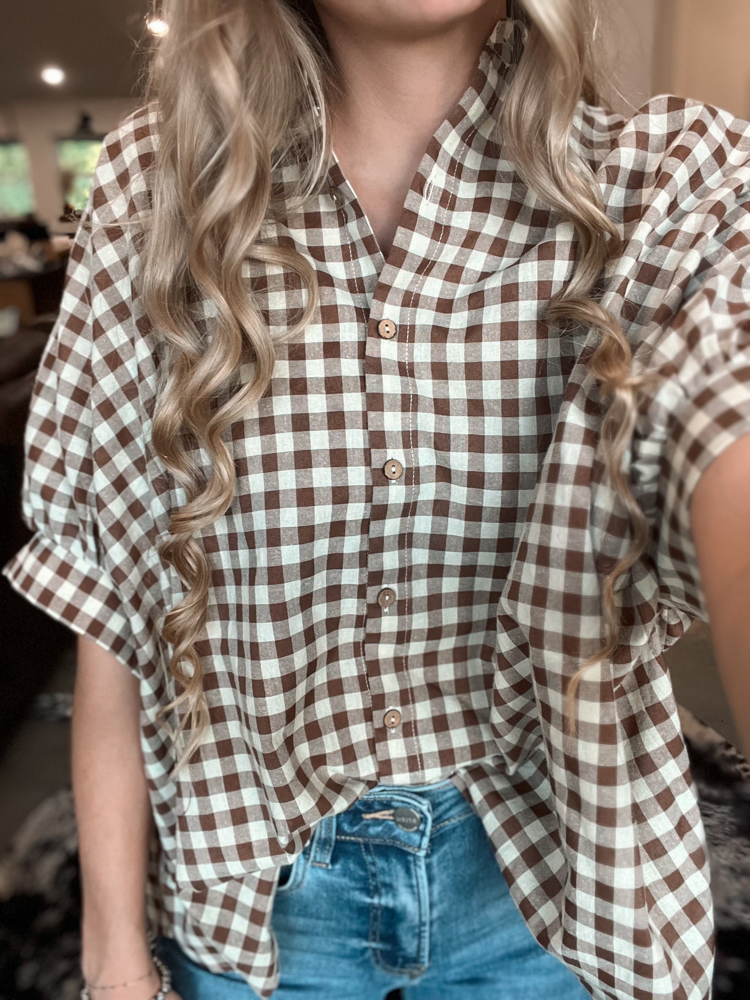 "Get ready to gingham and go in style with The Willow Gingham Top! This oversized top features a textured gingham pattern and button down front for a playful twist on a classic look. Perfect for any occasion, this top will keep you looking chic and on trend!"