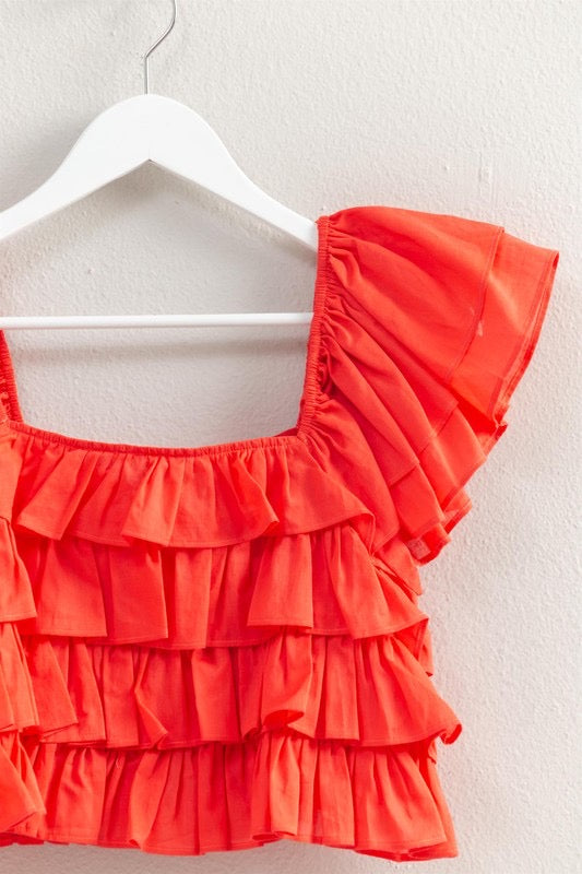 Get ready to turn heads in The Yours Truly Top! Made from lightweight cotton voile, this top features a playful square neck, charming ruffle detail, and a cropped hem for effortless style. Perfect for any occasion, this top is a must-have for your wardrobe.