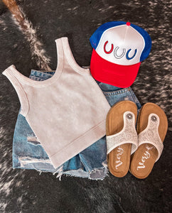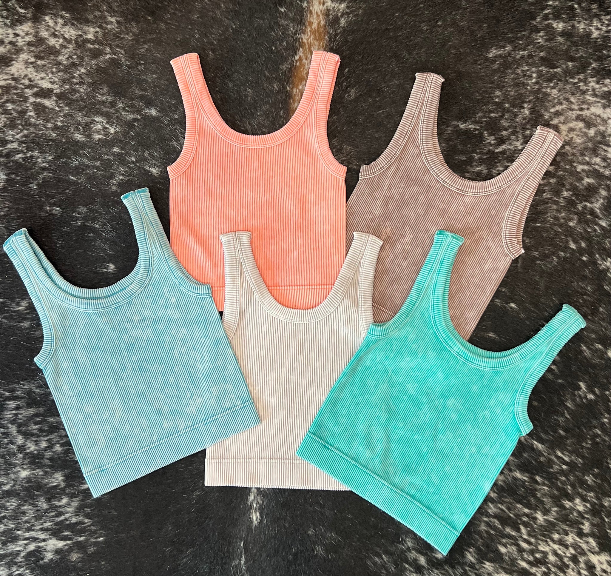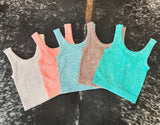 Add a touch of stylish whimsy to your wardrobe with The Zadie Tank. Made of stone washed ribbed fabric, this seamless tank top is both trendy and comfortable for all-day wear.