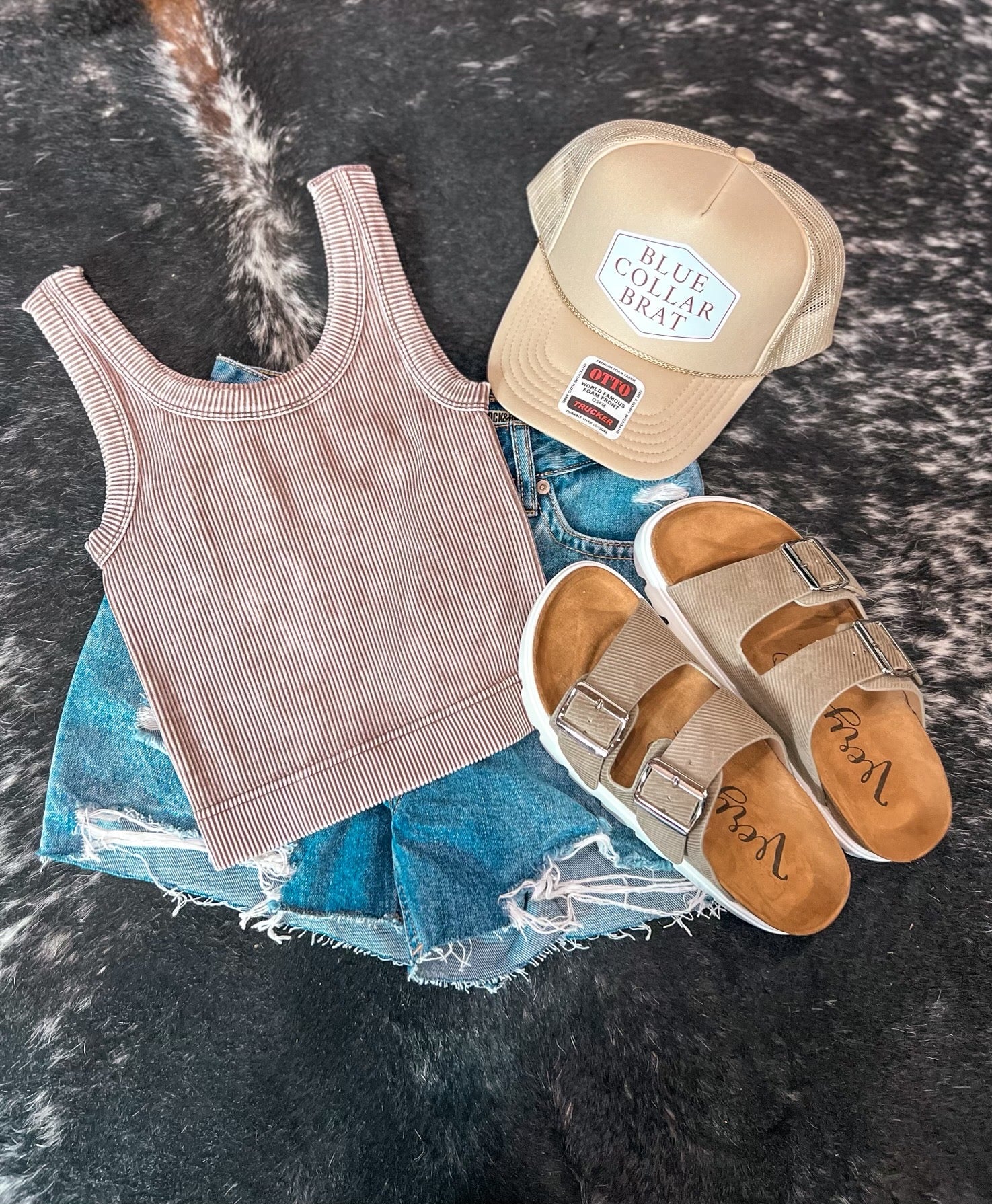Add a touch of stylish whimsy to your wardrobe with The Zadie Tank. Made of stone washed ribbed fabric, this seamless tank top is both trendy and comfortable for all-day wear.
