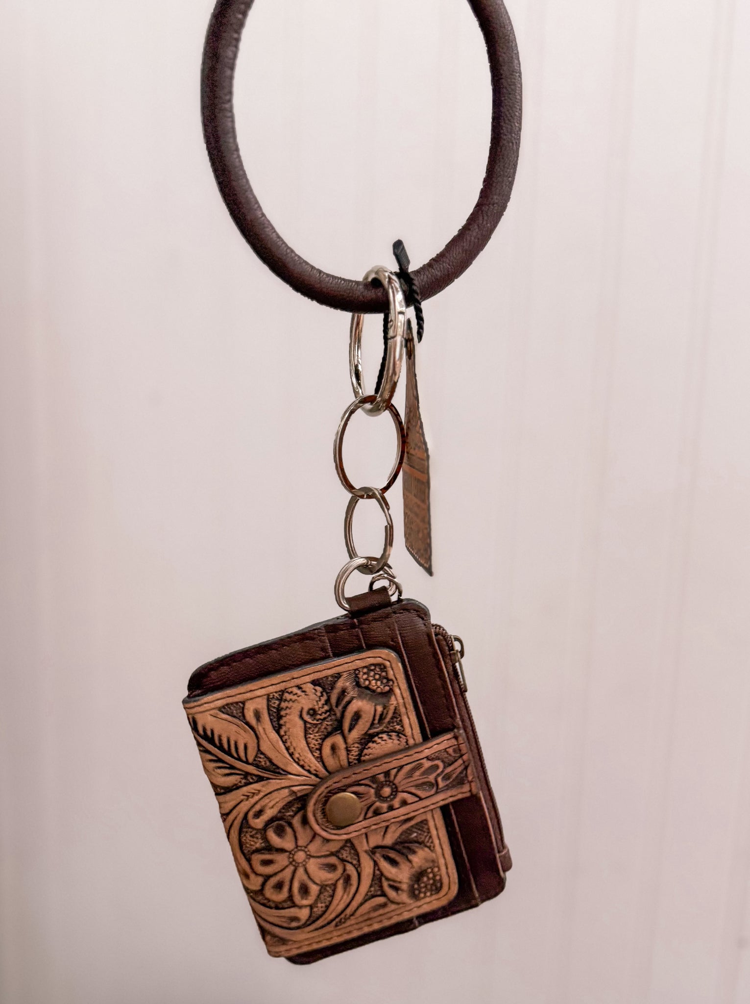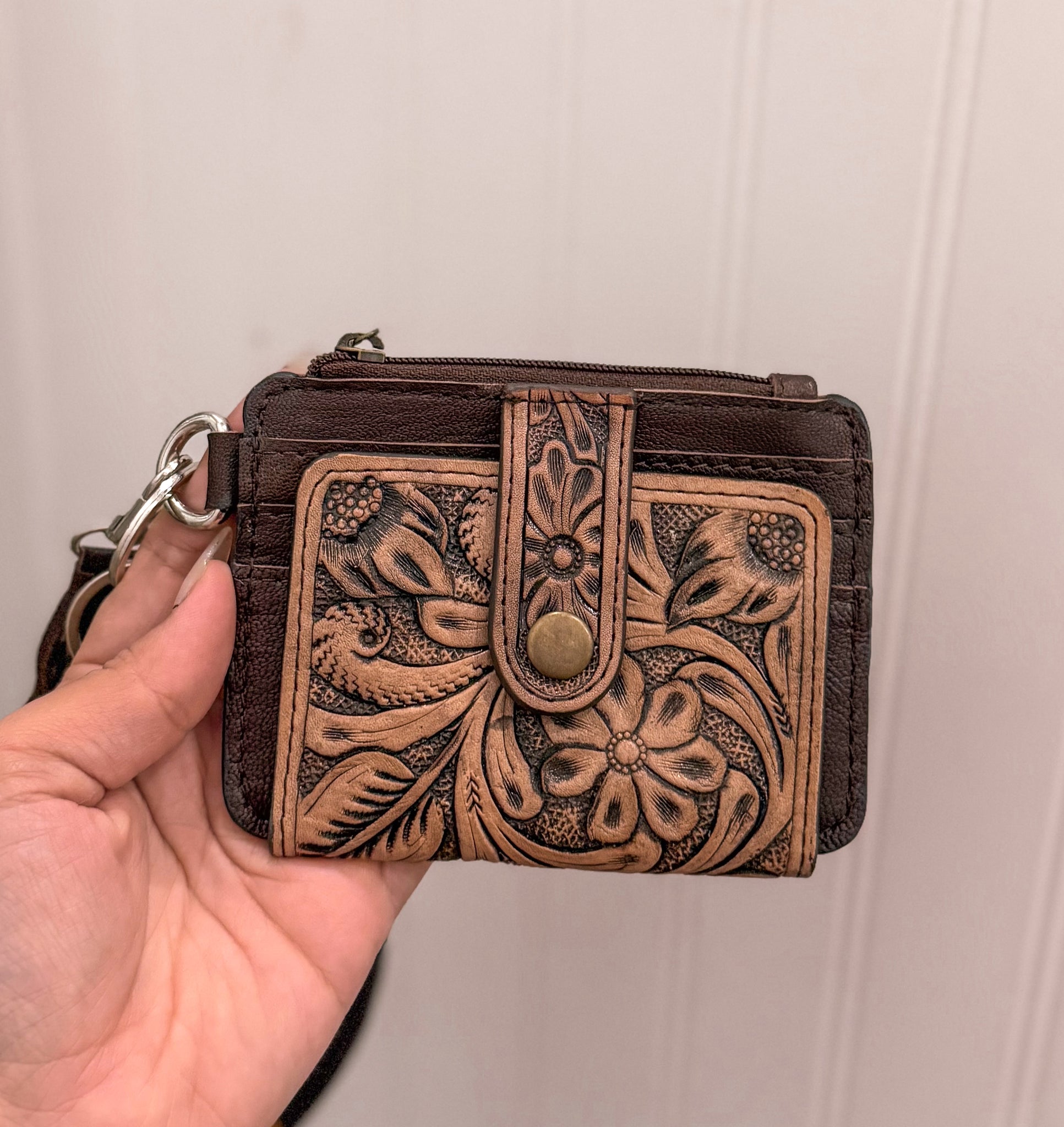 These Tooled Leather Wristlets are expertly crafted with intricate designs and high-quality leather. Perfect for carrying your essentials while making a fashion statement. The durable material and timeless style make them a must-have addition to any wardrobe.