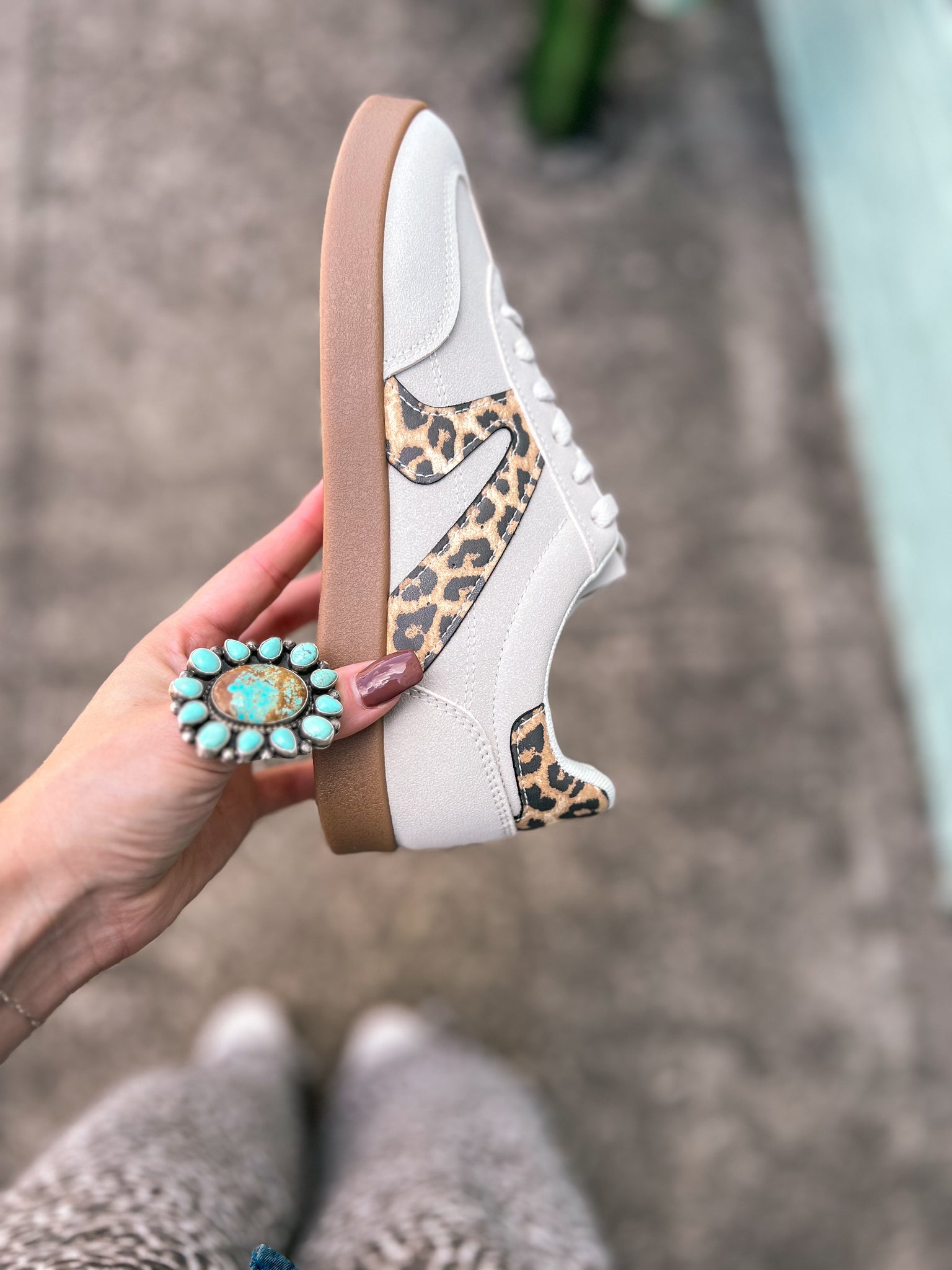 "Liven up your footwear collection with these Retro Leopard Sneakers. Combining classic retro vibes with a fierce leopard print, these sneakers add a playful touch to any outfit. Walk on the wild side and make a statement with these quirky kicks. (Purr-fect for any fashionista!)"