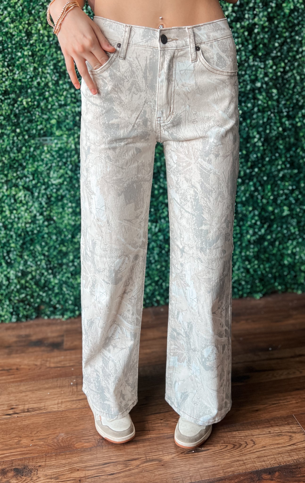 Step into stealth mode with our White Camo Wide Leg Jeans! These fab pants are like a fashion ninja—blend in with style while standing out in comfort (who knew camouflage could be so comfy?). Perfect for those days when you want to look laid back yet incredibly chic!