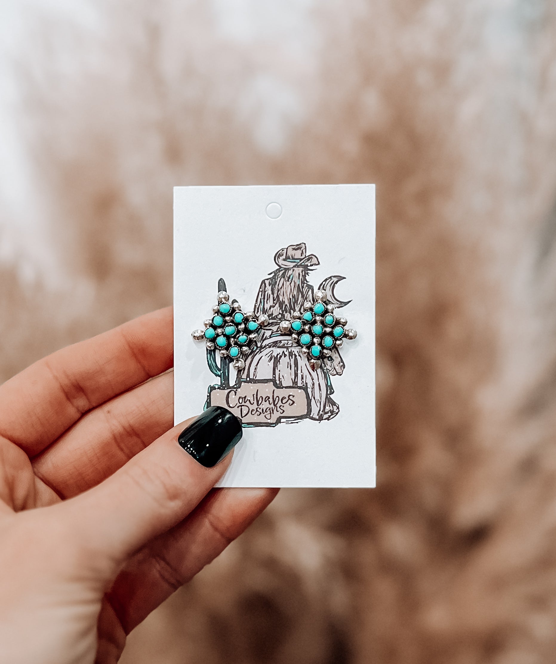Zuni Turquoise Sterling Silver Snake Eye Earrings